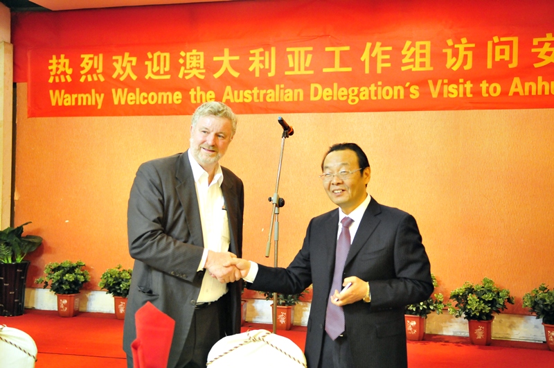 交流会上,李卓民总经理致欢迎辞,并向客人介绍了安徽农垦基本情况及走出去发展战略,随后播放了农垦宣传片并在合肥黄山大厦宴请了澳方访华代表团一行。约翰·兰特里团长致答谢辞,对安徽农垦的热情招待表示感谢。双方表示今后要加强在农业投资领域的交流合作。(杨涛)