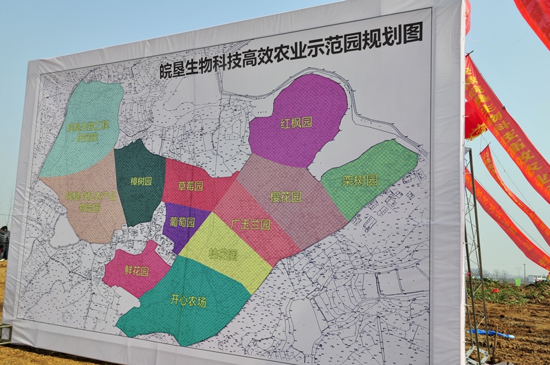 为开辟富有农垦特色的宣传窗口,满足市民日益增长的生活需求,安徽农垦落子合肥市蜀山区南岗镇,合作建设一个综合性大型高效农业示范园。该园占地957.3亩,按功能划分为生物科学研究院、有机农产品物流园、开心农场、生态水果园和八个苗木景观区。建成后, 将为农垦集团及南岗镇带来良好的经济和社会效益。
