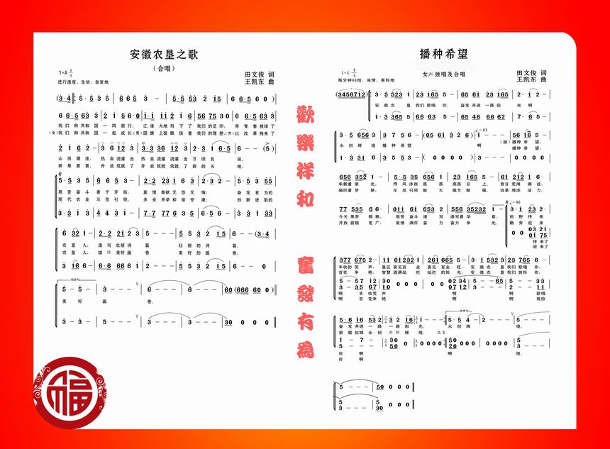联欢会在一曲欢快的《好运来》歌舞中拉开帷幕,随后,集团公司领导班子全体成员及部分处室负责人在作曲家王凯东先生的指挥下演唱了为农垦创作的《安徽农垦之歌》,热烈奔放,慷慨激昂,表达了13万农垦人奋发向上的心声。机关、垦直和社区三个代表队分别为联欢会呈现上精彩纷呈的节目,体现了本次联欢会欢乐祥和,奋发向上的主题。相声《报幕》为联欢会带来了阵阵笑声。歌曲《阳光路上》讴歌了农垦人的幸福生活。诗朗诵《人民万岁》激昂顿挫,表达了对第一代共和国领袖的敬仰。表演唱《农垦新一代》展示了农垦新生代的青春风采。戏曲联唱唱出了中华传统文化的精髓。联欢会特邀安徽省歌舞团团长王跃武先生深情演唱了《家和万事兴》和《左邻右舍》,精彩的演唱赢得了阵阵掌声。安徽省著名歌唱家黄凤霞领唱的《播种希望》展现了农垦奋发有为、充满希望的广阔前景,声情并茂的演唱将联欢会推向了高潮。