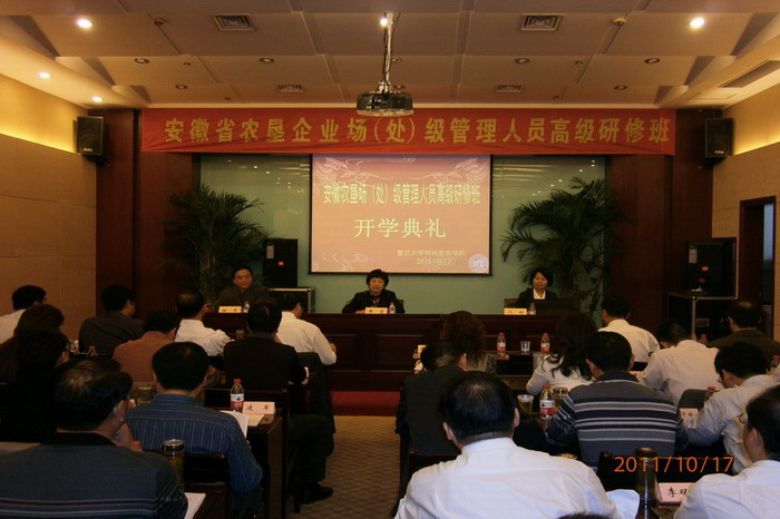 为贯彻落实中央关于大规模培训干部、大幅度提高干部队伍素质的要求,进一步提高农垦企业领导干部经营管理水平和能力,10月17日至24日,安徽农垦集团在复旦大学举办“十二五”期间第一期农垦企业场(处)级管理人员高级研修班。此次研修班由程军副总经理带队,集团公司人力资源部承办,各场(公司)场长(经理)和总部机关部分处室负责同志共45人参加培训。