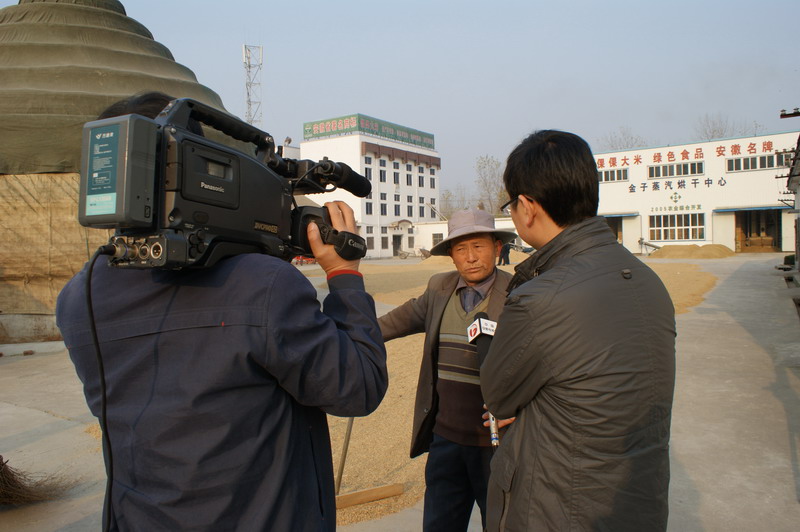 安徽电视台记者就倮倮米业、专业合作社、种粮大户如何依托“订单农业”实现互利双赢的情况,现场采访了倮倮米业公司负责人钱奕庭、“订单大户”华福昌和董尖圩稻业合作社理事长宣有林,并多角度拍摄了“订单粮”交售和大米加工的现场画面。
