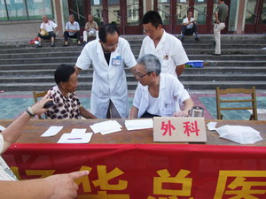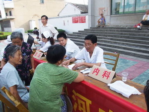 为确保全场职工的身体健康,9月1日,华阳河农场医院请安庆市第二人民医院外科专家及宿松县人民医院的内科专家来场为广大职工进行义诊。义诊期间的各种检查费优惠40%,这一举措吸引了众多老年同志前往参加。(图为义诊时的场面)