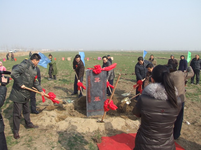 在欢快的乐曲和轰鸣的礼炮声中,刘振元、杨俊宇、邵乃昌、刘学军、牟连恕、余桃成、施永坚、何懿、何戈弋、刘全忠为龙腾奶牛养殖公司开工建设挥锹奠基。