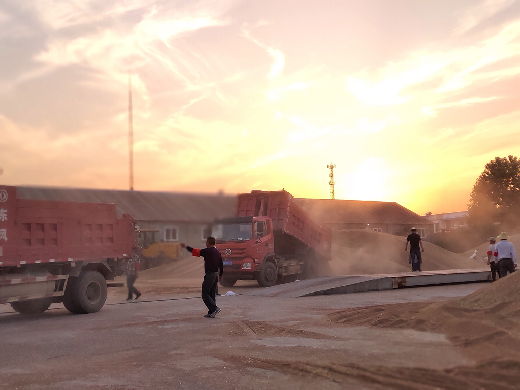 午收的主打色是金色,成群结队的大型收割机从清晨工作到夕阳西下,收割的小麦直接运往农场各个农服收购站。运粮车从上称、检测、卸粮到出站不过十多分钟的时间,迅速快捷而有序。(华阳河农场公司 包丹凤)