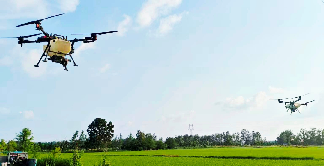 植保无人机喷施农药作业。